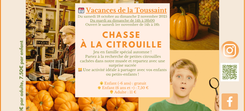 Partez à la recherche de petites citrouilles cachées dans notre musée et repartez avec une surprise sucrée