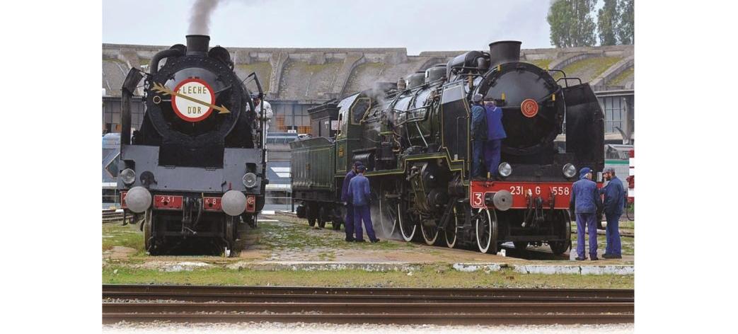 Circulation de train à vapeur entre Arques et Lumbres, remorqué en alternance par différentes locomotives (Pacific 231 G 558, Pacific 231 K 8, 020 Cockerill 503 + BB 63852)300