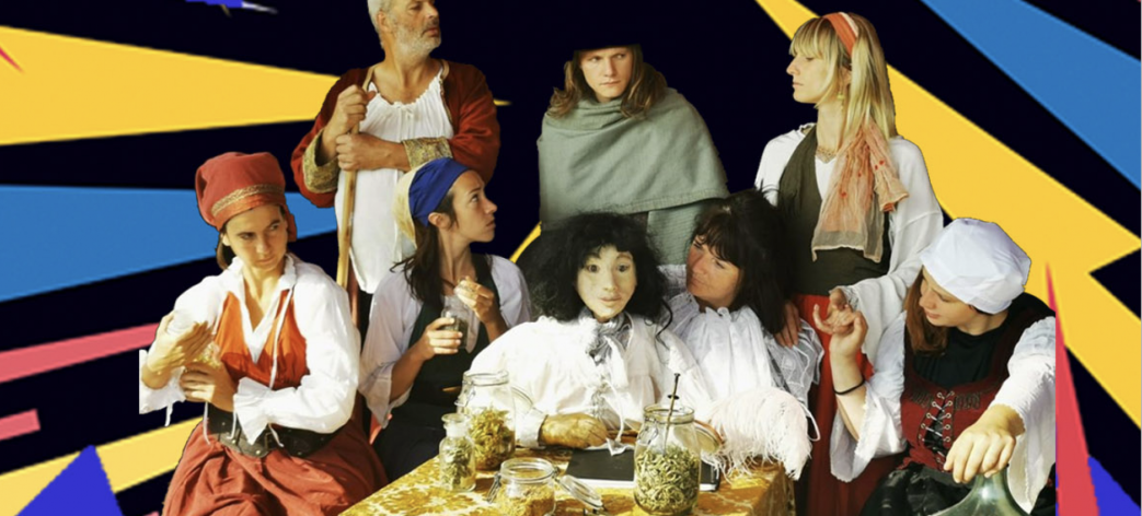 Du théâtre de tréteau comme au 17e siècle mais avec des collerettes en tuyau d’aération, un auteur très inspiré manipulé par une marionnettiste, deux sœurs généreuses mais rarement d’accord, des plantes et des fleurs médicinales en pagaille, un beau-père complotiste et libidineux, un amoureux macho-gauchiste et son cochon progressiste, une aubergiste plus musicienne que commerçante, une mystérieuse fabricoteuse (ne cherchez pas au dico, vous ne trouverez rien) et un barman laconique.