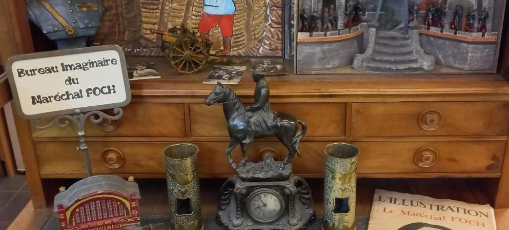 Artilleur et polytechnicien, mène une carrière de Général avec différentes affectations et commande le Groupe d’Armée du Nord de 1914 à décembre 1916 avec son Etat-Major à Cassel. Il participe à la bataille de Morhange en août 1914, à la première bataille d’Ypres fin 1914, à deux batailles en Artois en 1915 et à la bataille de la Somme en 1916. Chef d’Etat-Major Général et conseiller du Gouvernement en 1917, nommé Généralissime et commandant en chef des Forces Alliées du Front Ouest en 1918, il nous mène à la Victoire et signe l’Armistice le 11 novembre 1918 dans le célèbre wagon en forêt de Compiègne. Nommé Maréchal le 07 août 1918, il commande le défilé de la Victoire à Paris sous l’Arc de Triomphe le 14 juillet 1919. Cette épopée s’intègre dans l’exposition sur la guerre 14-18 « Le Jouet s’en va-t-en guerre » au musée du jouet ancien, en particulier depuis la donation fin 2024 d’une collection exceptionnelle de 700 soldats Quiralu représentant le défilé de la Victoire du 14 juillet 1919. Parmi d’autres thèmes abordés, la mobilisation en août 1914, les taxis de la Marne, les fraternisations à Frelinghien à Noël 1914, les tranchées, l’artisanat de tranchée, le château de Robersart transformé en hôpital de l’armée allemande, la bataille des Dardanelles, Verdun, les chars anglais à Cambrai, le char français Renault FT17, le Baron Rouge Manfred von Richthofen…