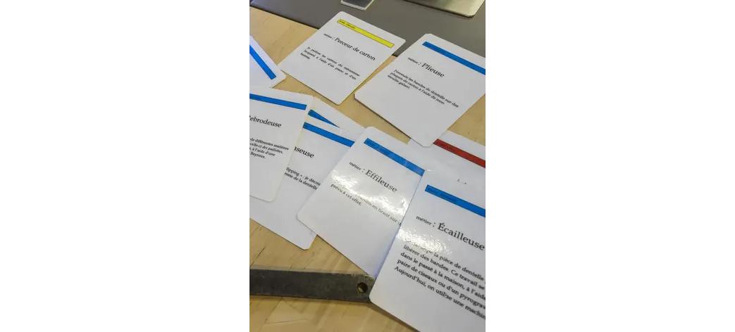 A l’aide de cartes à jouer, retrouvez la chronologie de la fabrication de la dentelle mécanique tissée, étape par étape.