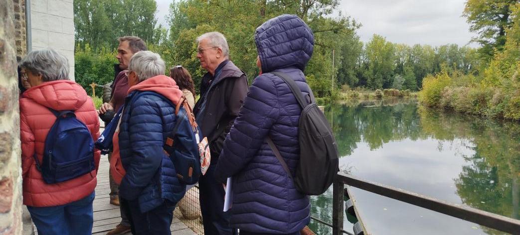 La journée a débuté à Fauquembergues par la visite du Moulin Mannessier, guidée par Mathilde Duval (Centre d’histoire du Haut-Pays). Ce premier arrêt a permis aux participants de découvrir le fonctionnement de ce moulin à eau et d’en apprendre davantage sur les papiers d’Hallines, porteurs d’œuvres littéraires et symboles d’un patrimoine artisanal d’exception.