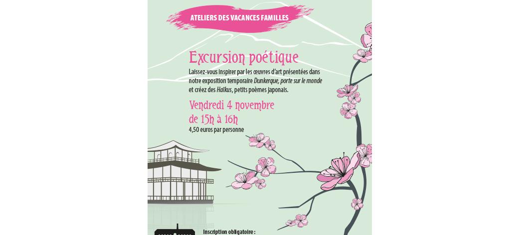 En famille, participez à la visite-atelier "Excursion poétique". Laissez-vous inspirer par les œuvres d’art présentées dans notre exposition temporaire Dunkerque, porte sur le monde et créez des Haïkus, petits poèmes japonais.300