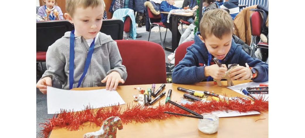 À quelques heures de la nouvelle année, les enfants confectionnent un calendrier illustré des éléments emblématiques de la mine, en utilisant différentes techniques artistiques.