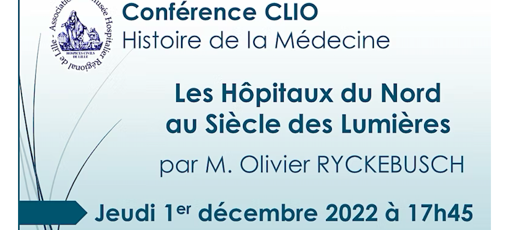 Dans le cadre des conférences CLIO organisées par l’Association du Musée Hospitalier Régional de Lille, une conférence « Les Hôpitaux du Nord au Siècle des Lumières », par M. Olivier RYCKEBUSCH