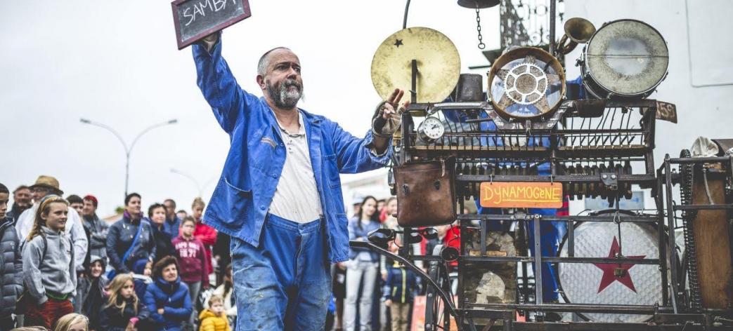 Les deux artistes-ouvriers des Et Dynamogène en délégation syndicale officielle viennent vous présenter « La Cymbalobylette » et « Le Rotocloche », deux engins musicaux hybrides. Boniments techniques homologués, rythmes endiablés (samba - valse - bossa nova - rock’n’roll
