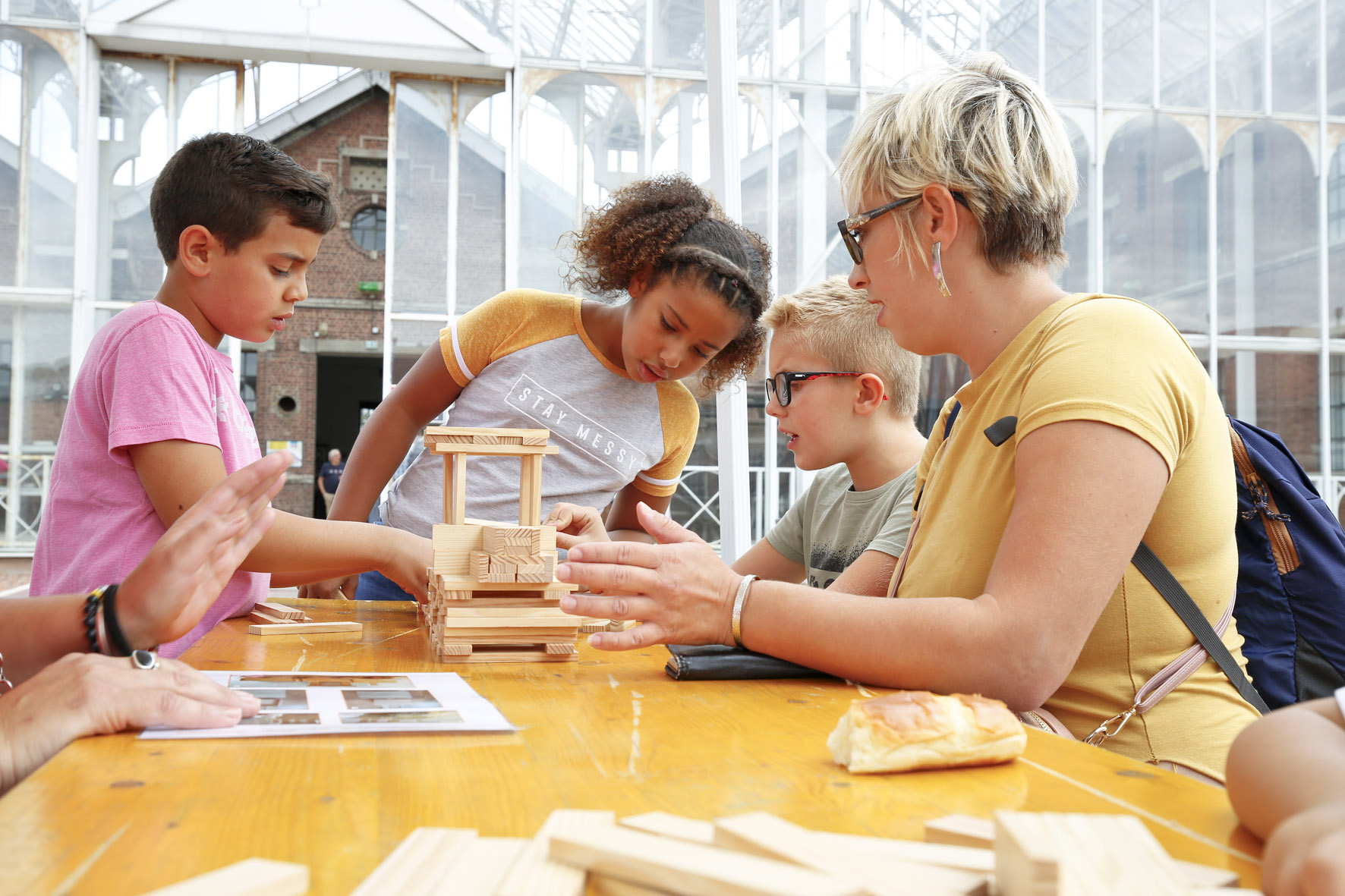 Installés sur le carreau de la fosse Delloye, au milieu des bâtiments qui la composent, les enfants découvrent les différentes infrastructures minières et deviennent à leur tour de petits architectes en les reconstituant avec des planchettes de bois.