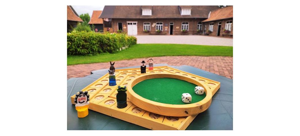 Jeu de l’oie grandeur nature dans le musée, avec plateau de jeu.