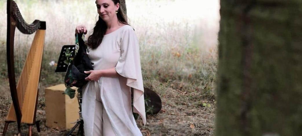 À l’ombre des arbres, confortablement installés dans un écrin de verdure, les spectateur·ice·s sont invités à se détendre et à laisser vagabonder leur imaginaire. Harpe, guitare, kalimba, tambour, bol tibétain… les sons se mêlent aux chants des oiseaux pour créer une atmosphère douce et envoûtante.