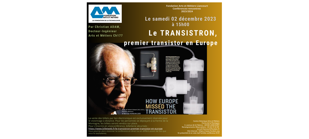 Le Transistron, premier transistor produit en série en Europe, par Christian ADAM, Dr. Ingénieur A&M (Ch177), conférencier