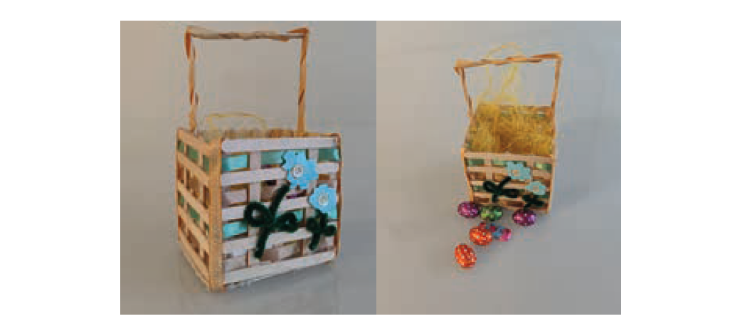 Réalisez un panier original en croisant plusieurs techniques avec bois, rubans et tissus, puis partez à la chasse aux oeufs !300