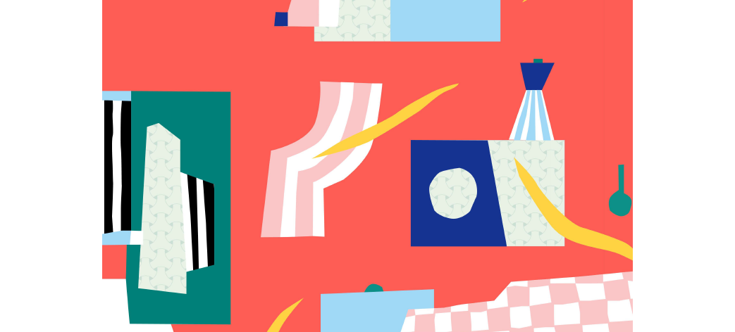 Cette installation toute de rose, de bleu, de vert, de blanc et de rouge inspirée des objets du quotidien rend un vibrant hommage aux habitants d’hier et de demain.