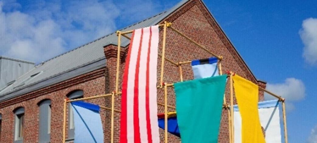 Soixante toiles peintes dans de joyeuses teintes sont suspendues dans tout le coron.