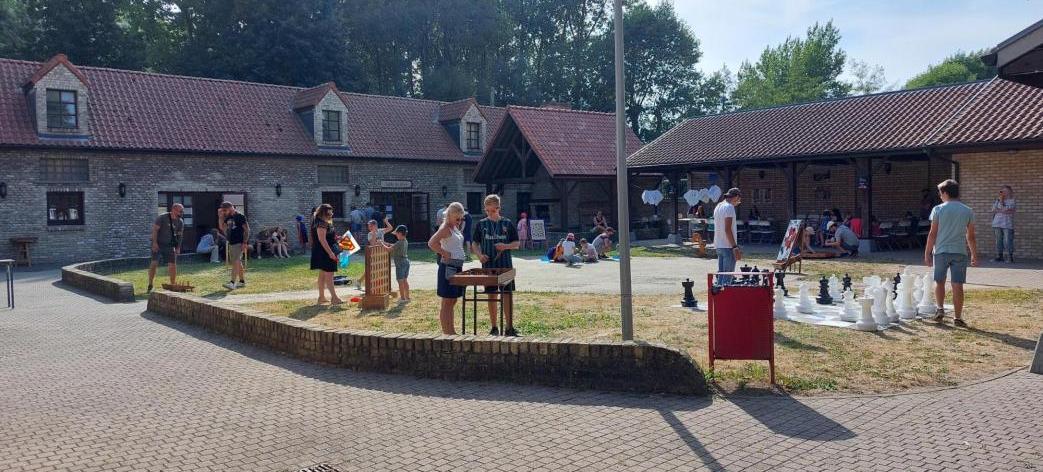 Une salle de jeux où les visiteurs peuvent s’initier à différents jeux flamands, et par beau temps des jeux extérieurs flamands installés dans l’enceinte de la cour de la Ferme.