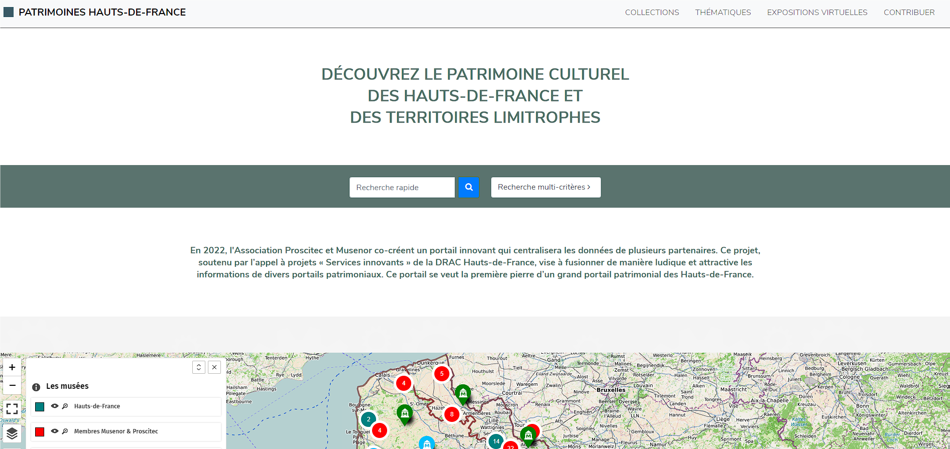 Ce portail est le fruit d’une collaboration étroite entre PROSCITEC et MUSENOR, animées par une même volonté : rendre le patrimoine régional accessible à tous. Grâce au soutien de la DRAC, de la Région Hauts-de-France, et des conseils départementaux, cet outil innovant a été développé avec A&A Partners, pour vous offrir une plateforme riche et engageante.